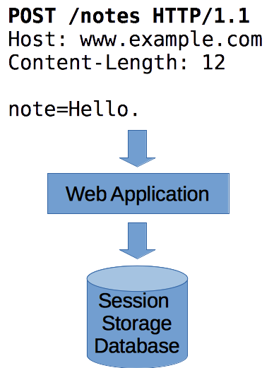 Let's say we have a simple note taking application that allows the users to post notes to a page and view them at a later time (if they check the page from the same browser). The user fills out an HTML form and clicks the submit button.