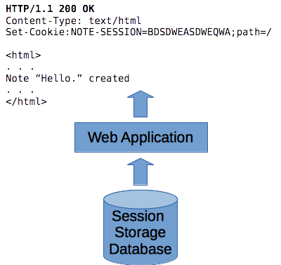 Now that the note resource has been created, the server sends back a 'NOTE-SESSION' cookie for retrieval later.