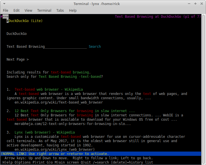Lynx does not have the bells and whistles of modern browsers, but it is a useful