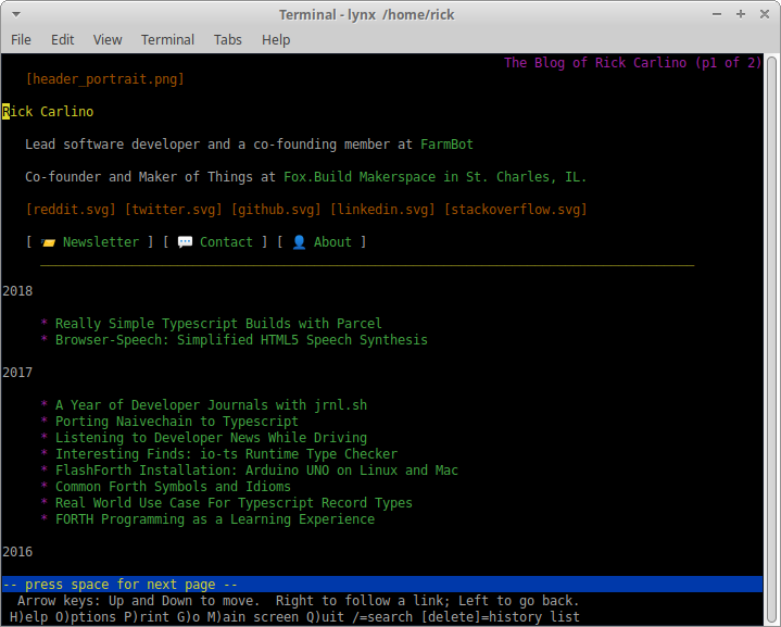 Below is a collection of websites that work nicely on text-based web browsers. All websites were loaded and rendered in Lynx.