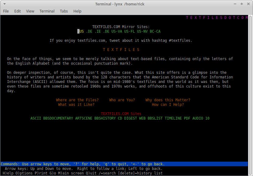 Below is a list of sites that work great on text-based browsers. It is a perfect starting point for those wishing to give text-based browsing a try.